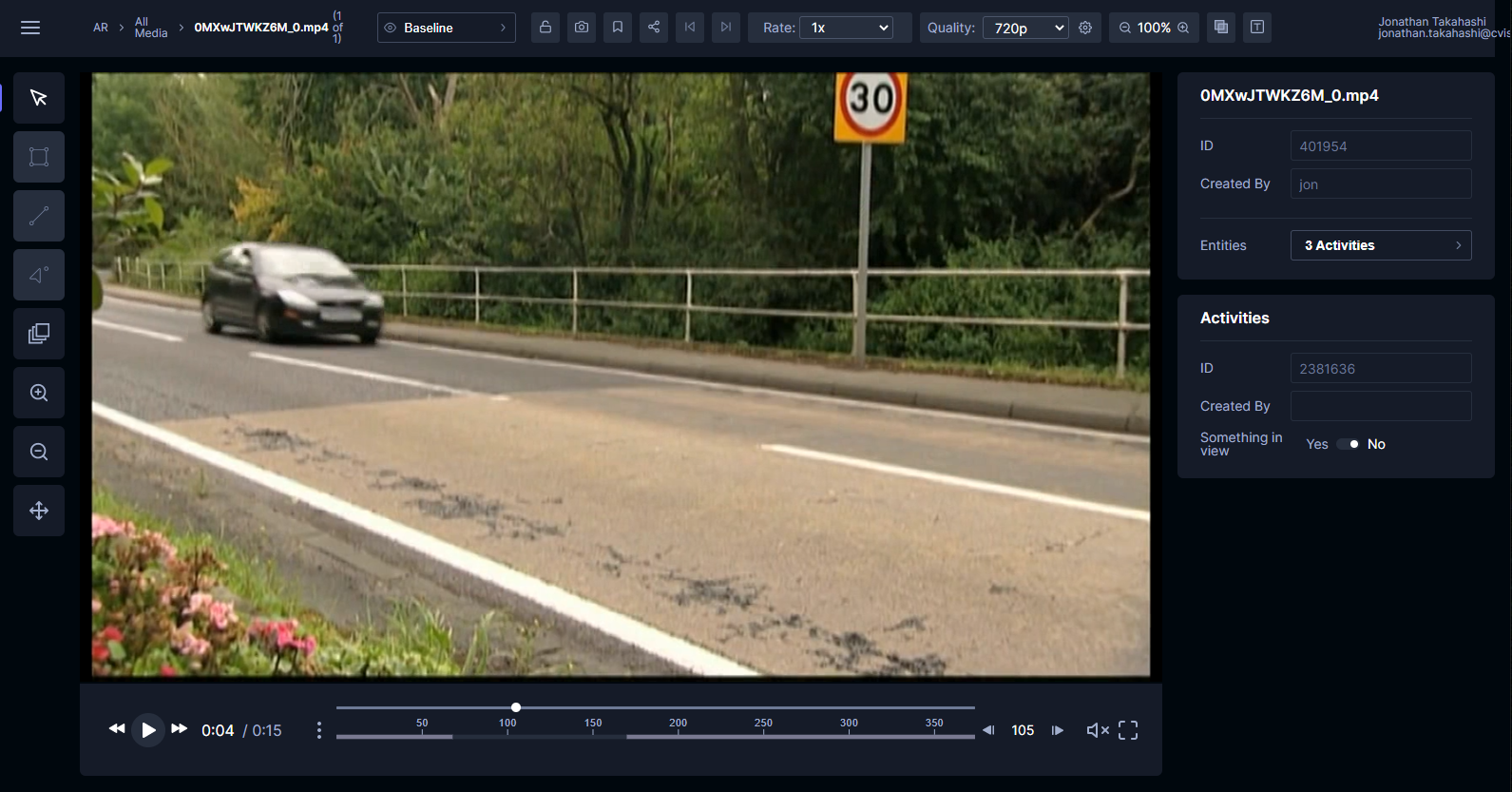 We moved the rate and quality controls down with the other player controls, such as volume, full screen, and the scrub bar. The scrub bar now sits under the buttons so that it can use the full horizontal width of the video. This is especially useful on activity recognition projects that use advanced timeline features.
